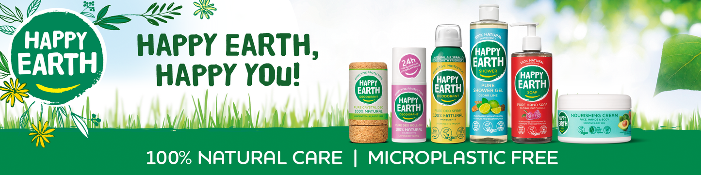 All products are certified for full transparency towards the consumer. Happy Earth proudly carries the certifications of NATRUE, Vegan Society, and Zero Plastic Inside.